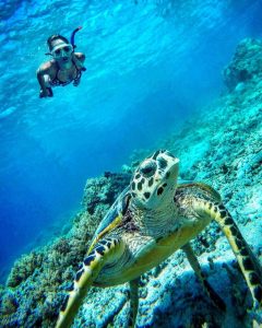 Sailing to Champion Islet, here we can swim with sea turtles, sea lions and white-tipped sharks.